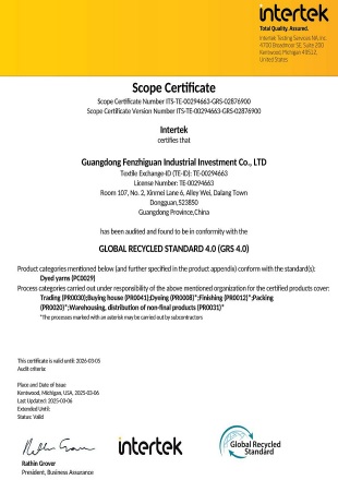 Guangdong Fenzhiguan Industrial Investment Co., Ltd., una marca subsidiaria de Guangdong Jiesheng Textile Co., Ltd., se estableció en 2002. Con sede en la ciudad de Dalang, la ciudad de Dongguan, Jiesheng Textile es una de las principales empresas de China en la industria textil. Guiado por su filosofía principal de "calidad primero, reputación suprema", la compañía ha establecido una posición de la industria sobresaliente en los mercados nacionales e internacionales a través de sistemas de gestión modernos, capacidades de producción sólidas y un equipo profesional.